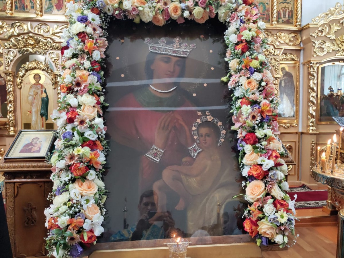 Образ, хранящийся в Свято-Введенском женском монастыре, был написан в 1711 году в размер оригинала, прославившегося в России в 1709 году, во время Северной войны.