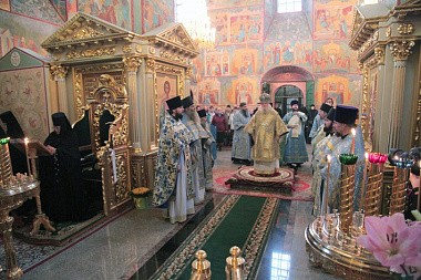 Поздравляя игумению Варвару с памятной датой, митрополит Пантелеимон напомнил, что матушка Варвара 30 лет назад приняла эту древнюю, прославленную в истории обитель разрушенной и поруганной. «На протяжении этих лет и настоятельница, и сестры молились ко Господу, – отметил владыка, – чтобы им была дарована возможность восстановить монастырь и благоукрасить это святое место. И сегодня вместо разрухи и запустения мы видим восстановленные храмы, в которых не умолкает молитва».