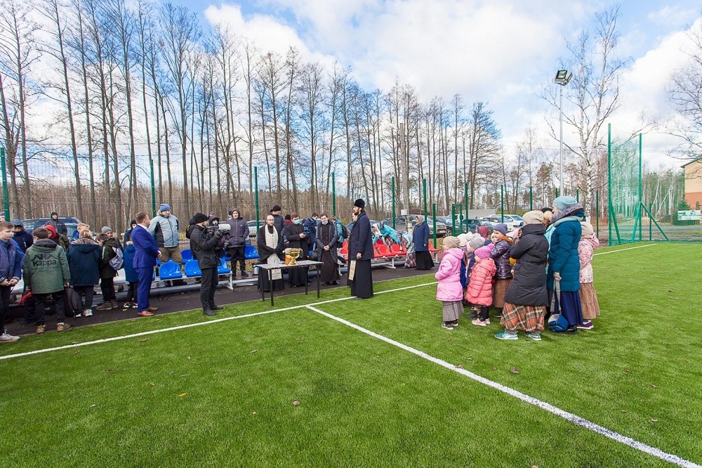 В Свято-Введенской островной женской пустыни состоялось открытие стадиона. После торжественной части открытия, был совершен благодарственный молебен с освящением футбольного поля.