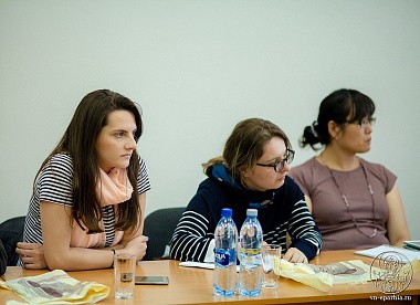 По окончании встречи студентам и сотрудникам фонда раздали иконки великомученика Георгия Победоносца и брошюры с информацией о Юрьевом монастыре.