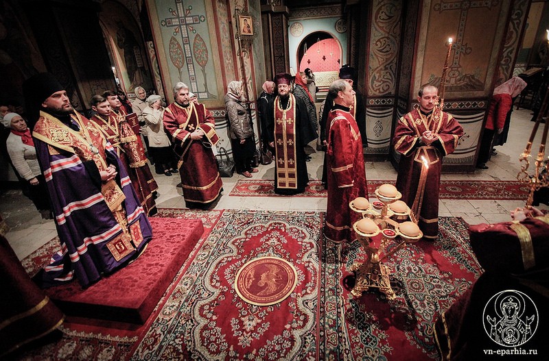 По окончании Литургии Владыка обратился к молящимся с архипастырским словом. Он отметил, что из церковной истории мы знаем, что мать императора Константина святая Елена в 326 году обрела Честной и Животворящий Крест. Тогда же по повелению самого императора на Святой Земле стали строиться храмы и величественный собор, который должен был вместить в своих стенах Гроб Господень и Голгофу. 13 сентября (26 сентября по новому стилю) 335 года завершилось строительство этого собора, который был освящен в честь Воскресения Христова. 14 сентября этого же года (27 сентября по новому стилю) состоялся первый праздник в честь Воздвижения Креста Господня.