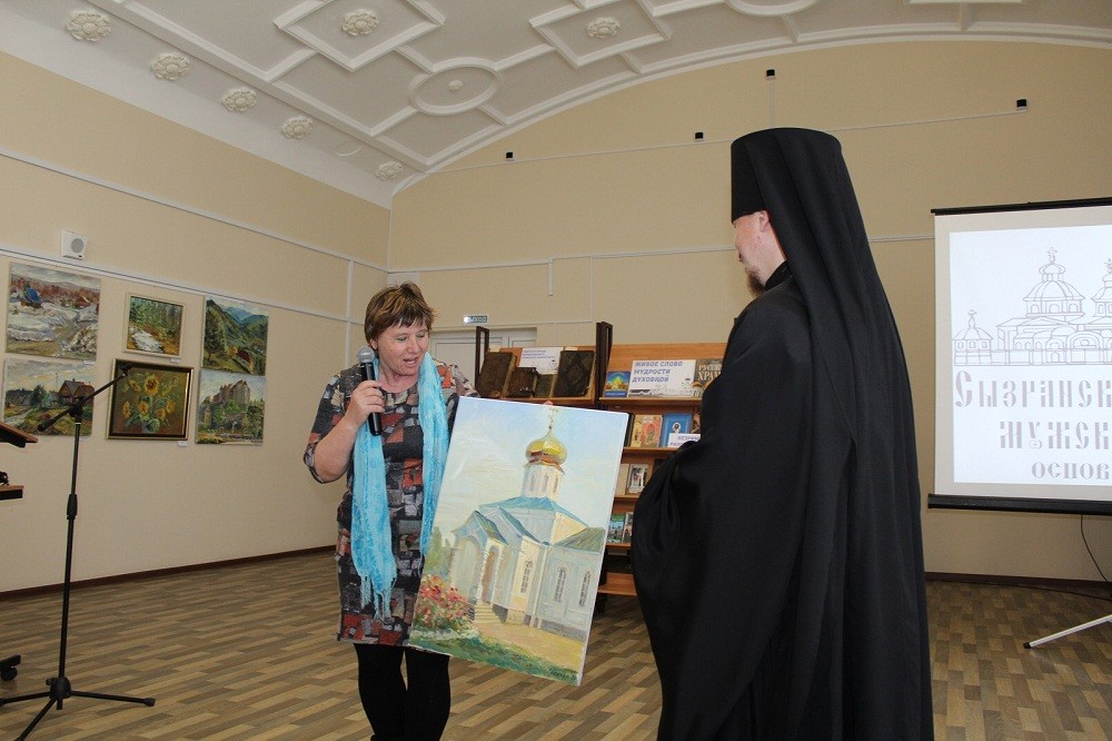 В завершение презентации игумен Агафангел подарил часть тиража в фонд ЦБС г. Сызрани.