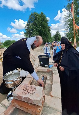 Епископ Евсевий призвал благословение Божие на строителей храма, а также на всех православных христиан, помогающих обители в созидании Дома Божьего.