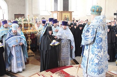 В свою очередь настоятельница монастыря игумения Нина (Волкова) поблагодарила владыку за соборную молитву и заботу об обители. Настоятельница монастыря преподнесла митрополиту Варнаве заздравную просфору и букет цветов.