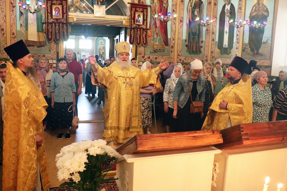 После чтения Евангелия епископ Алексий обратился к прихожанам с проповедью, в которой поздравил игумению Пантелеимону с сестрами, духовенство храма и всех прихожан с престольным праздником.
