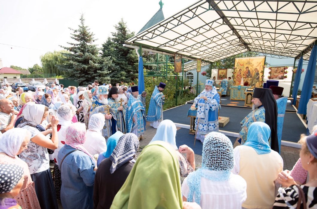 За Божественной литургией под открытым небом на монастырской площади Его Высокопреосвященнейшему сослужили благочинный монастырей Гомельской епархии игумен Феодорит (Золотарев), клирики Тихвинского монастыря, духовенство епархии.