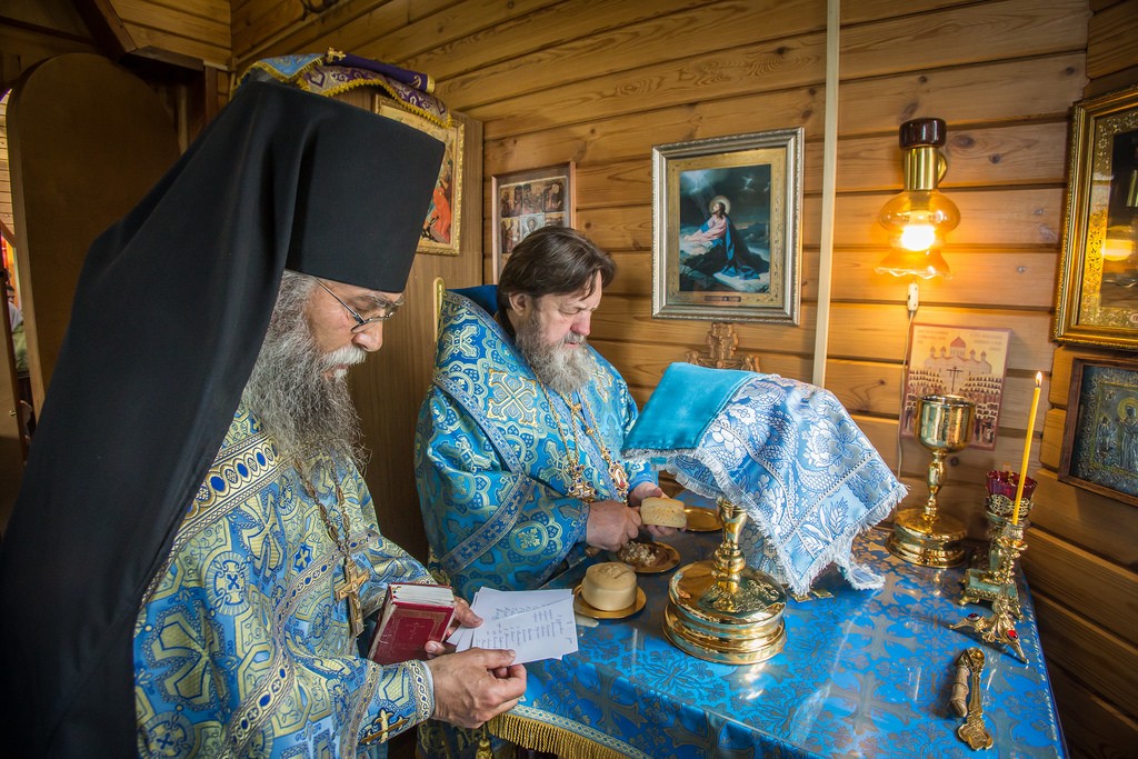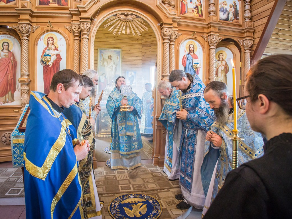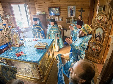 Правящему архиерею за литургией сослужили настоятель монашеской общины игумен Зосима (Сахипгараев), благочинный Воткинского округа иеромонах Павел (Белокрылов), настоятель Богоявленского храма с. Гольяны священник Александр Филиппов, настоятель Свято-Троицкого храма с. Якшур священник Кирилл Муравьев, а также клирики монашеской общины Тихвинской иконы Божией Матери.