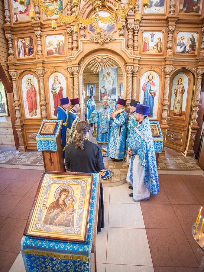 Божественную литургию в храме в честь Тихвинской иконы Божией Матери при большом стечении верующих возглавил митрополит Ижевский и Удмуртский Викторин.