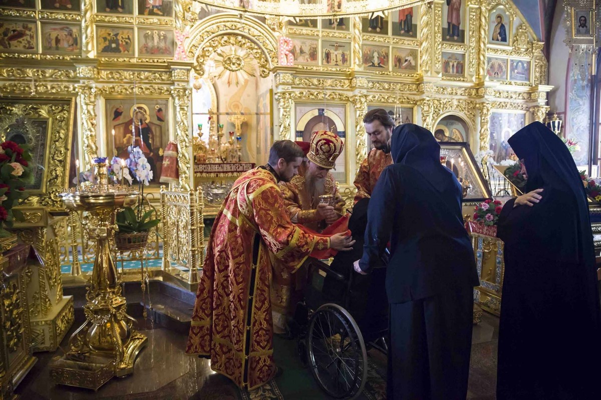 В этот день Божественную литургию в Крестовоздвиженском храме обители возглавили епископ Рыбинский и Даниловский Вениамин и епископ Алапаевский и Ирбитский Леонид в сослужении клириков епархий Ярославской митрополии.