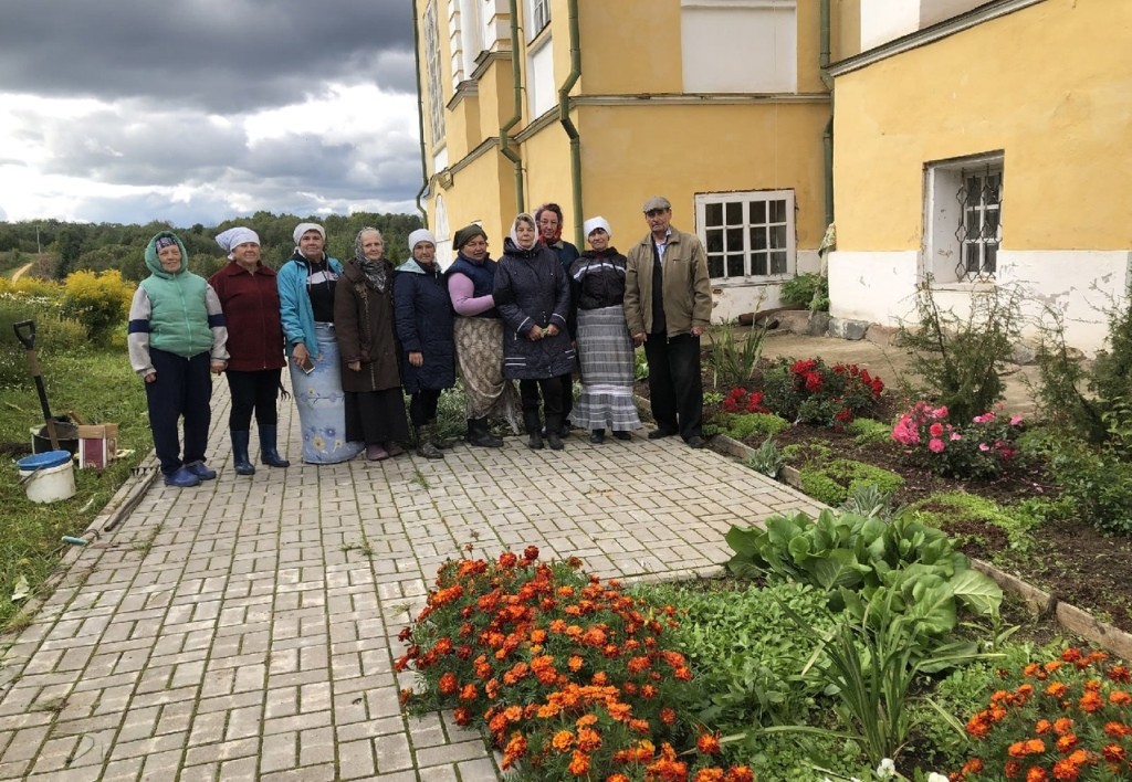 Члены ветеранских клубов «Верные друзья» и «Здоровье» привели в порядок цветочные клумбы на территории обители и убрали накопившийся мусор.