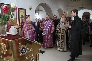 По случаю престольного праздника игумен монастыря архимандрит Андрей (Крехов) в сослужении братии обители совершил Литургию Преждеосвященных Даров.
