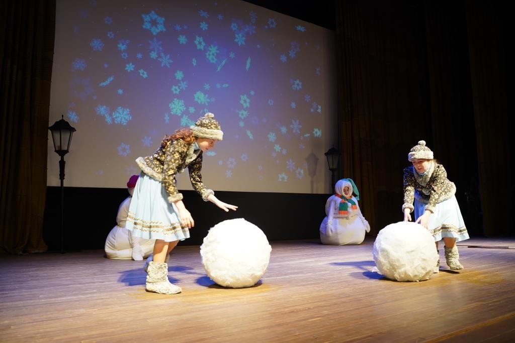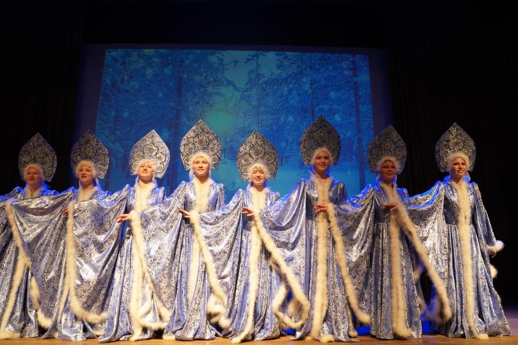 О значении праздника Рождества Христова и о традициях его празднования малоярославецким школьникам рассказали «рождественские волхвы», которые перемежались с «зимними» хореографическими композициями: хороводом «Зимние узоры», танцем белых медведей с северным оленем и девушками в традиционных финских костюмах. О традициях рождественских ярмарок напомнили «Деревенские посиделки», а о том, что бы было «Если б не было зимы» – одноименный танец-песня.