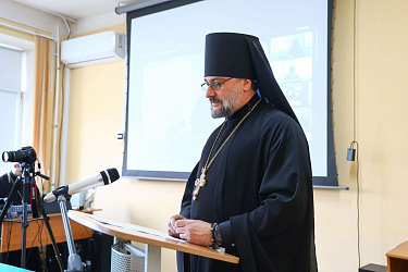 Далее епископ Веневский Феодорит, викарий Тульской епархии, представил вниманию участников заседания доклад на тему: «Идеалы древнего монашества в условиях современного мира: соприкосновение с миром». В своем исследовании владыка выделил три важных тезиса: