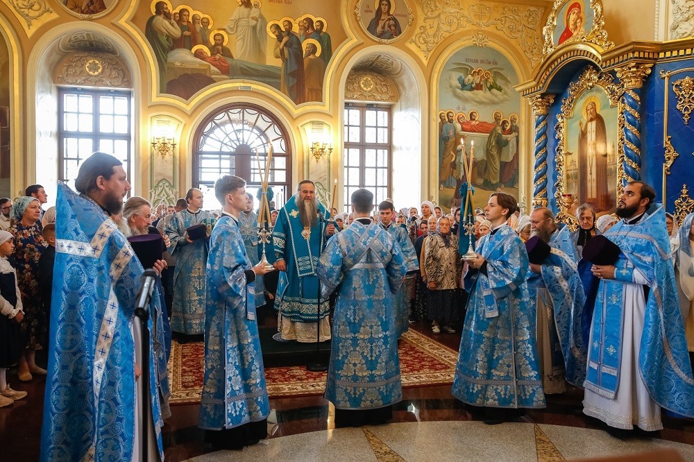 По сугубой ектении была вознесена молитва о Святой Руси. По окончании богослужения состоялся крестный ход вокруг храма. Затем были вознесены молитвы Пресвятой Богородице. После этого был совершен молебен на начало учебного года.