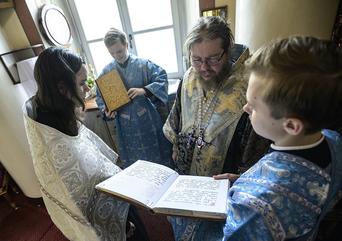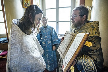 Во время богослужения митрополит Тихон совершил постриг во чтеца монаха Анатолия (Подоляна).