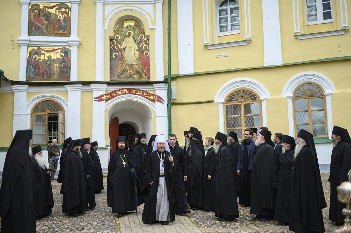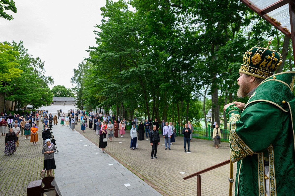 После прочтения Евангелия митрополит Тихон обратился к собравшимся с архипастырским словом, а также объявил, что богослужения с прихожанами будут теперь совершаться в Псково-Печерской обители ежедневно.
