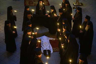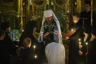 Во время богослужения митрополит Тихон совершил иноческие постриги послушника Александра (Ермакова) с сохранением имени Александр и послушника Алексея (Гринько) с наречением имени Макарий.