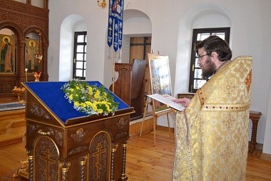 После заамвонной молитвы священномученику Игнатию были исполнены тропарь, кондак и величание. Перед образом святого была прочитана молитва.