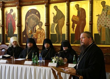 Основная часть конференции, проходившей в трапезном зале Вышенского монастыря, продолжилась выступлениями гостей и докладчиков, которые осветили как общие темы изучения наследия святителя Феофана (летопись жизни и творений), так и более узкие вопросы (атрибуция корреспондентов святителя и другие).