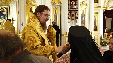 В завершение литургии владыка Феодорит поблагодарил епископа Дионисия и всё духовенство за радость совместного богослужения и вручил Патриаршие и епархиальные награды.