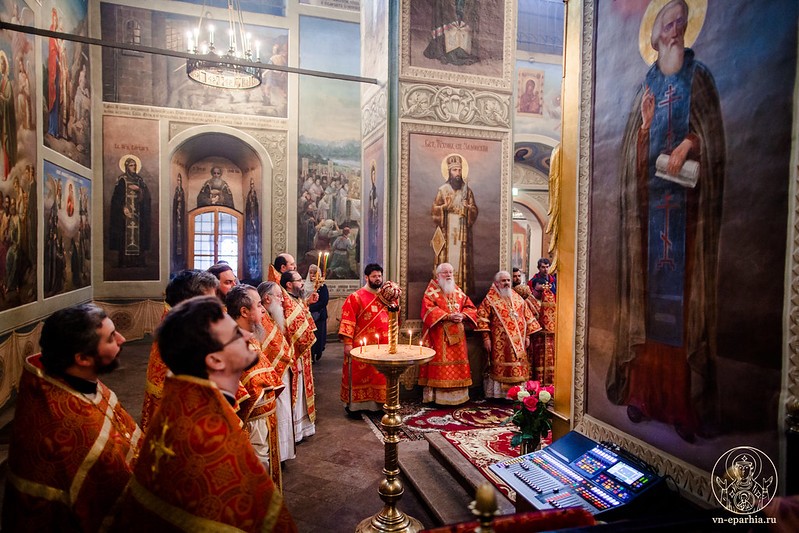Архиереям сослужило духовенство Новгородской и Боровичской епархий.