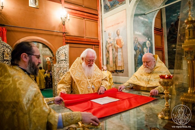 Открытие началось с Божественной литургии в Иверском соборе монастыря, которую возглавил митрополит Новгородский и Старорусский Лев.