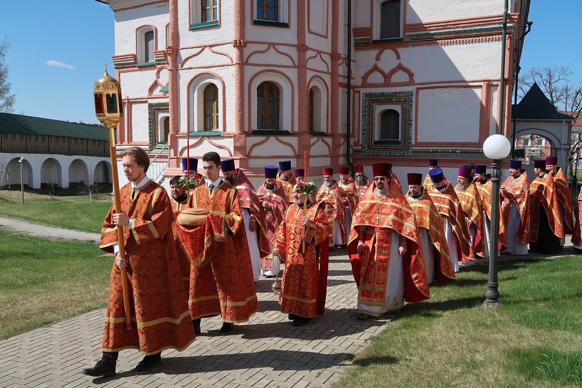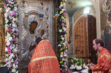 По окончании Божественной литургии были совершены крестный ход и славление перед Иверской иконой Божией Матери.