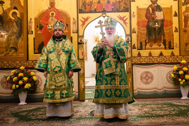 Богослужение сопровождалось пением мужского хора Новгородского духовного училища под управлением регента диакона Андрея Каурова.