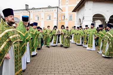 В этот день Божественную литургию в Спасо-Преображенском соборе обители совершили митрополит Новгородский и Старорусский Лев и викарий Новгородской епархии епископ Юрьевский Арсений в сослужении духовенства епархии.