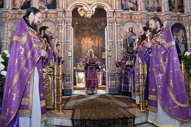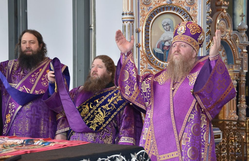 Во Владимирском соборе обители Его Преосвященству сослужили: архимандрит Трифон (Голубых), благочинный обители; игумен Савватий (Корнеев), иеромонахи: Иннокентий (Митин), Даниил (Ведмедь), Тихон (Дмитриев), Савва (Шевченко); иеродиаконы: Паисий (Боев), Антоний (Корнеев), Марк (Гречаный), Ираклий (Гарькавый), Александр (Мантров), Лаврентий (Подколзин); диакон Николай (Рошко), клирик обители.