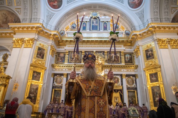 Архипастырь преподал прихожанам благословение и пригласил на предстоящие богослужения, на которых будут вспоминаться крестные страдания, смерть и погребение Спасителя.