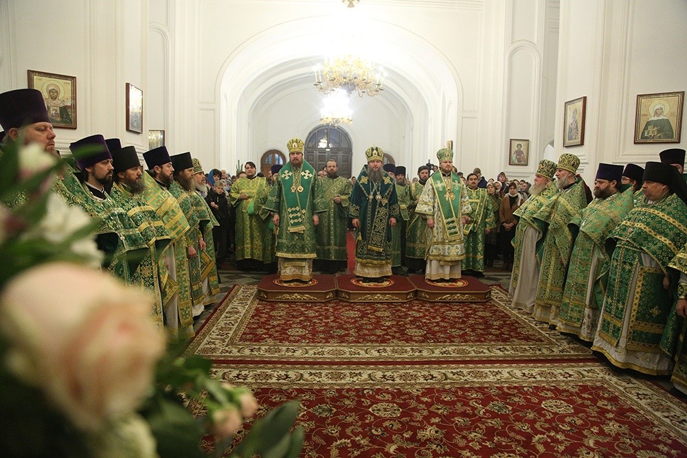 Высокопреосвященным владыкам сослужили клирики Екатеринбургской митрополии – многочисленное духовенство, настоятели и наместники обителей и братия монастырей в священном сане, в том числе секретарь Екатеринбургской епархии митрофорный протоиерей Николай Ладюк, настоятель Свято-Троицкого кафедрального собора Екатеринбурга митрофорный протоиерей Николай Малета, руководитель службы протокола Екатеринбургской епархии протоиерей Николай Тарантин, руководитель административного секретариата Екатеринбургской епархии иеромонах Аркадий (Логинов), наместник Свято-Николаевского Верхотурского мужского монастыря игумен Иероним (Миронов), и.о. наместника монастыря Царственных страстотерпцев на Ганиной Яме иеромонах Мелитон (Зыбин), руководитель отделов Екатеринбургской епархии по взаимодействию Церкви с обществом и СМИ, а также по взаимодействию с казачеством, протоиерей Максим Миняйло.
