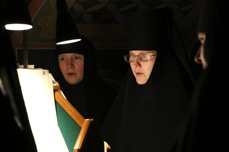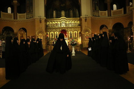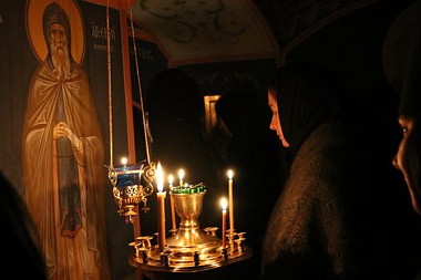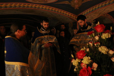 Ночная Божественная литургия была отслужена в крипте храма Преподобного Силуана Афонского (сам храм закрыт на время проведения реставрационных работ).