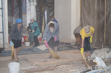 Приехавшие в монастырь с желанием потрудиться и внести свою лепту в благоукрашение монастыря усердно несли послушания, выполняя различные работы. Усилиями волонтеров было многое сделано при уборке территории обители, в монастырских садах, в устраиваемой теплице монастыря, в швейных мастерских.