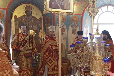 Божественную литургию в обители в этот праздничный день возглавил протоиерей Андрей Дьяконов, настоятель Благовещенского храма на Васильевском острове, в сослужении: протоиерея Алексия Рахманова, настоятеля храма святых апостолов Петра и Павла в поселке Красная Долина; иеромонаха Афанасия (Дерюгина), проректора Сретенской духовной семинарии, исполняющего обязанности благочинного Сретенского монастыря; игумена Адриана (Дементьева), настоятеля Антониево-Дымского монастыря; протоиерея Евгений Горянчика, настоятеля храма во имя иконы Божией Матери «Живоносный Источник»; иерея Димитрия Норкина, клирика Константино-Еленинского женского монастыря, и духовенства Новодевичьей обители.
