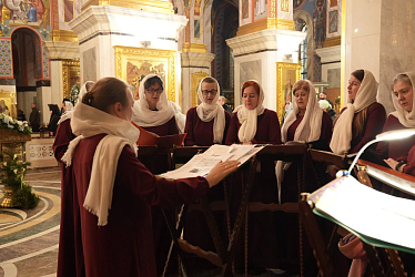За Литургией пели любительский женский и молодежные хоры монастыря.