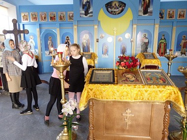 Перед началом занятий клириком Покровского кафедрального собора г. Сарапула иереем Павлом Шадриным в монастырском храме был отслужен молебен, по окончании которого дети перешли в новый просторный класс, приготовленный для нового учебного года.