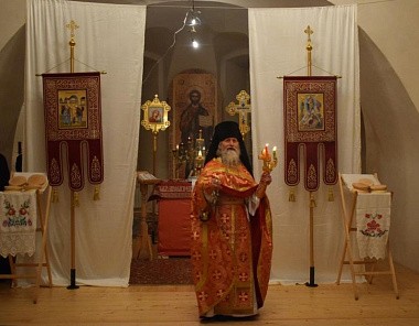 Настоятель Архиерейского подворья иеромонах Феодосий (Писарев) совершил малое освящение храма. Затем служились все уставные пасхальные богослужения: полунощница, пасхальная заутреня и Божественная литургия святителя Иоанна Златоуста.