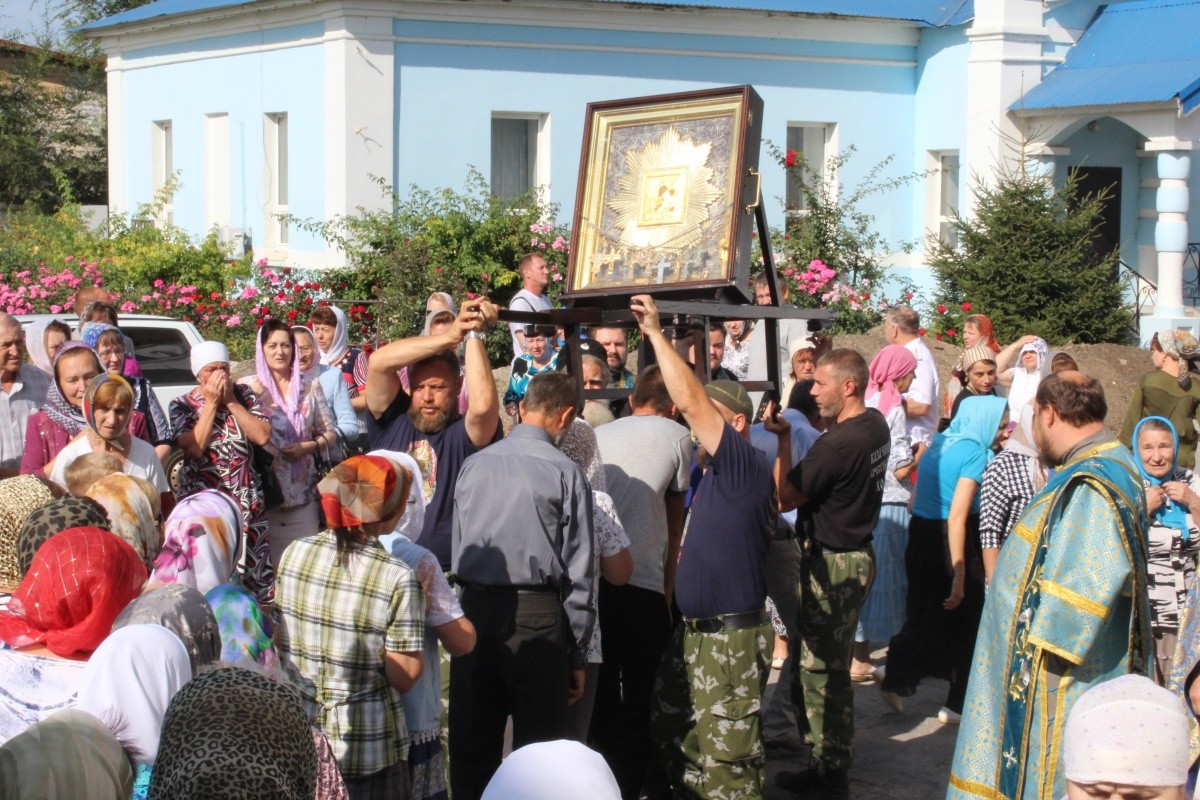 «Наш сызранский край имеет огромную радость и заступничество явлением Феодоровской иконы Божией Матери, которое произошло более 300 лет назад, – сказал в своем пастырском слове настоятель монастыря игумен Марк (Алексеев). – И вот без малого век назад, в октябре 1917 года, жительнице села Ташла Екатерине двумя ангелами было указание забрать из оврага икону Божией Матери "Избавительница от бед". Женщина выкопала из земли чудотворную икону, после чего на этом месте забил святой родник. И вот уже на протяжении века этот образ является святыней не только для жителей Ташлы, Ставропольского края, но и всей Самарской области.