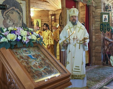 Игумения Евпраксия поблагодарила владыку за посещение обители и освящение новой церкви, посвященной всем русских святым, и подарила икону святителя Афанасия (Сахарова), епископа Ковровского.