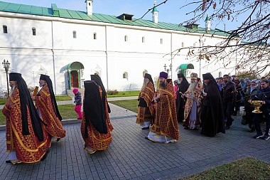 По окончании Литургии под звон монастырских колоколов верующие прошли крестным ходом по Романовской аллее Славы, а затем вокруг храмов обители.