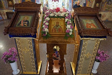 Затем архимандрит Тихон обратился к собравшимся со словом назидания, призвав следовать примеру жизни новомучеников земли нижегородской. После этого он освятил памятную плиту, установленную на галерее Успенской церкви в память трех нижегородских новомучеников попечением Императорского православного палестинского общества.