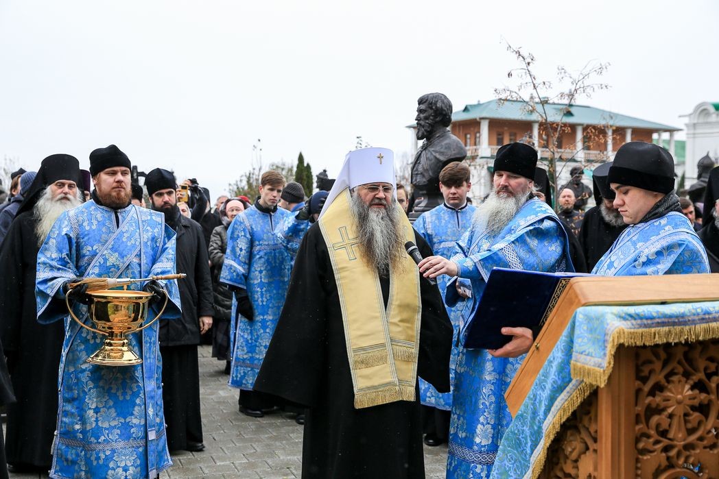 Настоятель монастыря подарил губернатору миниатюрную копию бюста императора Александра II. Потом высокие гости осмотрели памятники открытой аллеи.