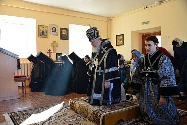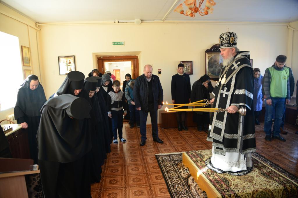 За богослужением молились старшая сестра православной общины Севского Спасо-Преображенского монастыря с сестрами монахиня Макария (Швец), настоятельница Севского Кресто-Воздвиженского монастыря игумения Афанасия (Личаева), паломники обители.