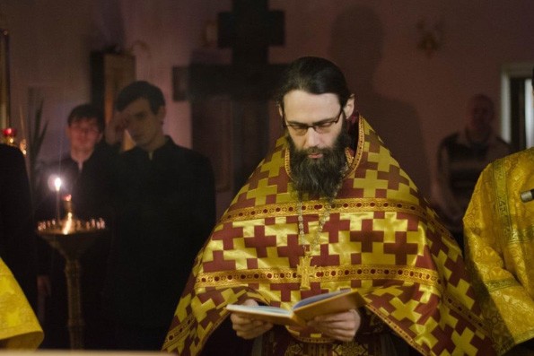 Его Высокопреподобию сослужили настоятель храма Успения Пресвятой Богородицы г. Казани (поселок Дербышки) протоиерей Алексий Краевский, насельник Кизического монастыря иеромонах Тихон (Калганов) и клирик Духосошественского храма г. Казани диакон Димитрий Вивчар.