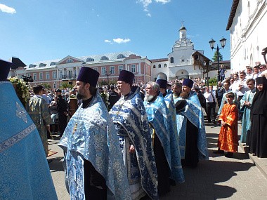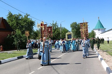 По окончании Литургии прошел крестный ход с образом Божией Матери «Неупиваемая Чаша» во Введенский Владычний женский монастырь.