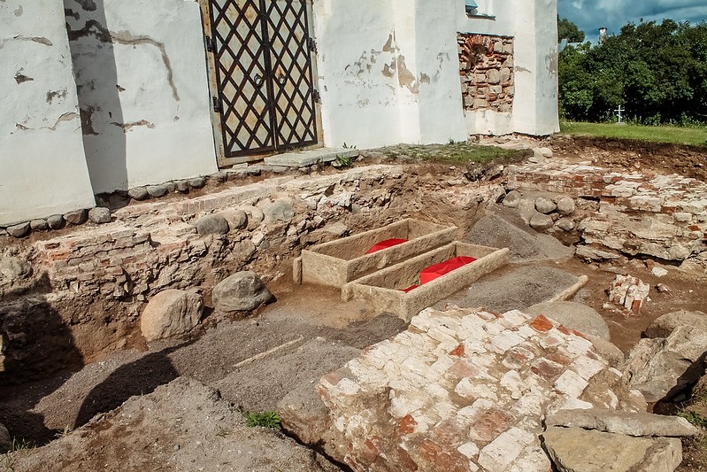 Археологи также обратили внимание на то, что погребение в саркофагах, расположенных у входа в храм и под полом церкви, соответствует христианском обряду: в саркофаги, в отличие от языческих захоронений, не помещали вещи, сопровождающие в загробный мир, а сами могилы находятся как можно ближе к церкви, о чем специально просили, чтобы символически соединиться с общиной перед Страшным судом.