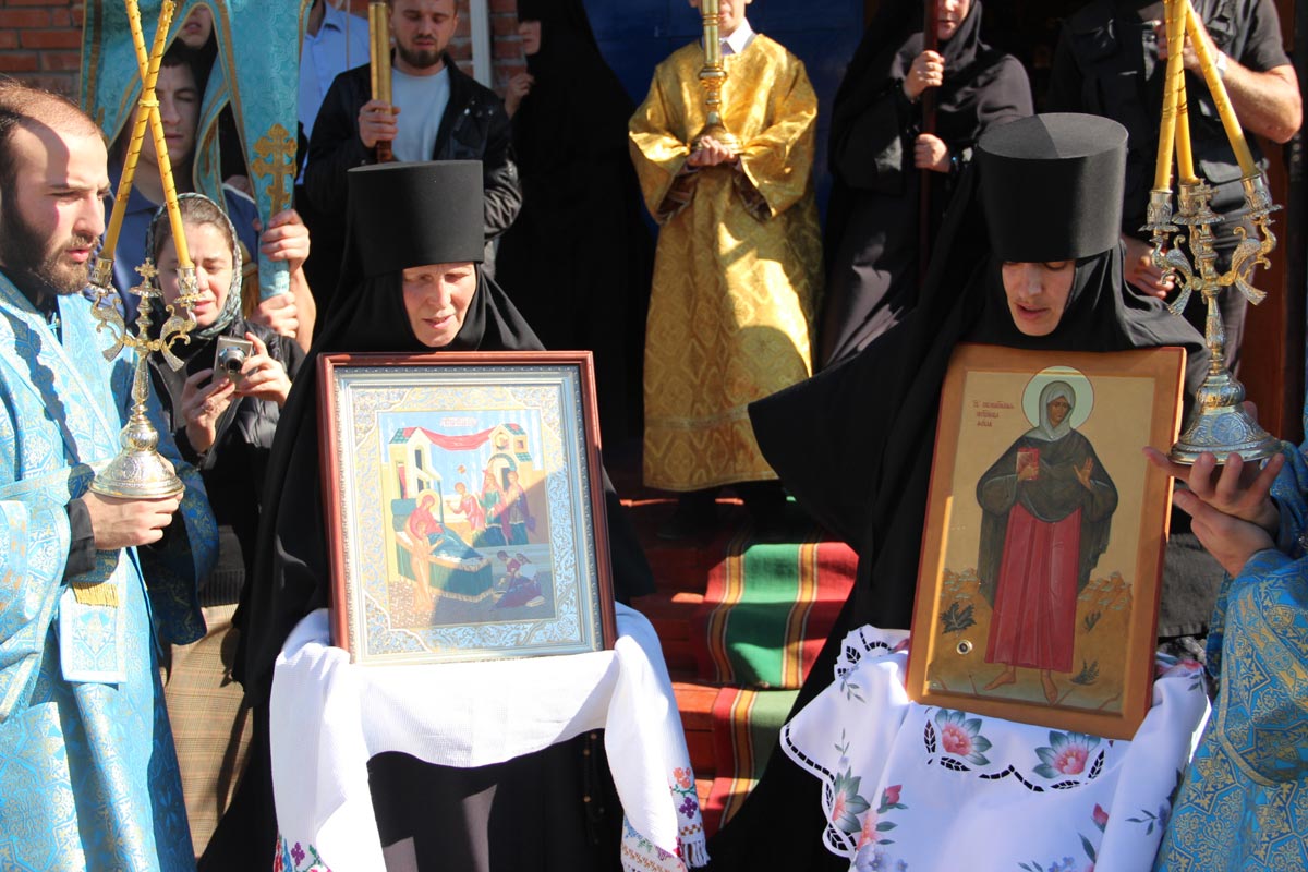 Затем по возвращении в храм священнослужители и молящиеся вознесли молитву ко Пресвятой Деве Марии.