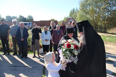 По окончании Литургии состоялся крестный ход к строящемуся храму в честь Святой равноапостольной Феклы, возле которого Владыка прочитал молитву святой первомученице.