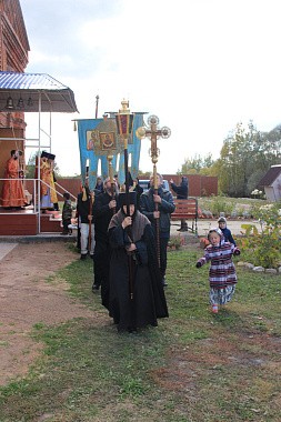 По заамвонной молитве состоялся праздничный крестный ход в строящийся храм Святой равноапостольной Феклы, в котором был отслужен молебен святой первомученице.
